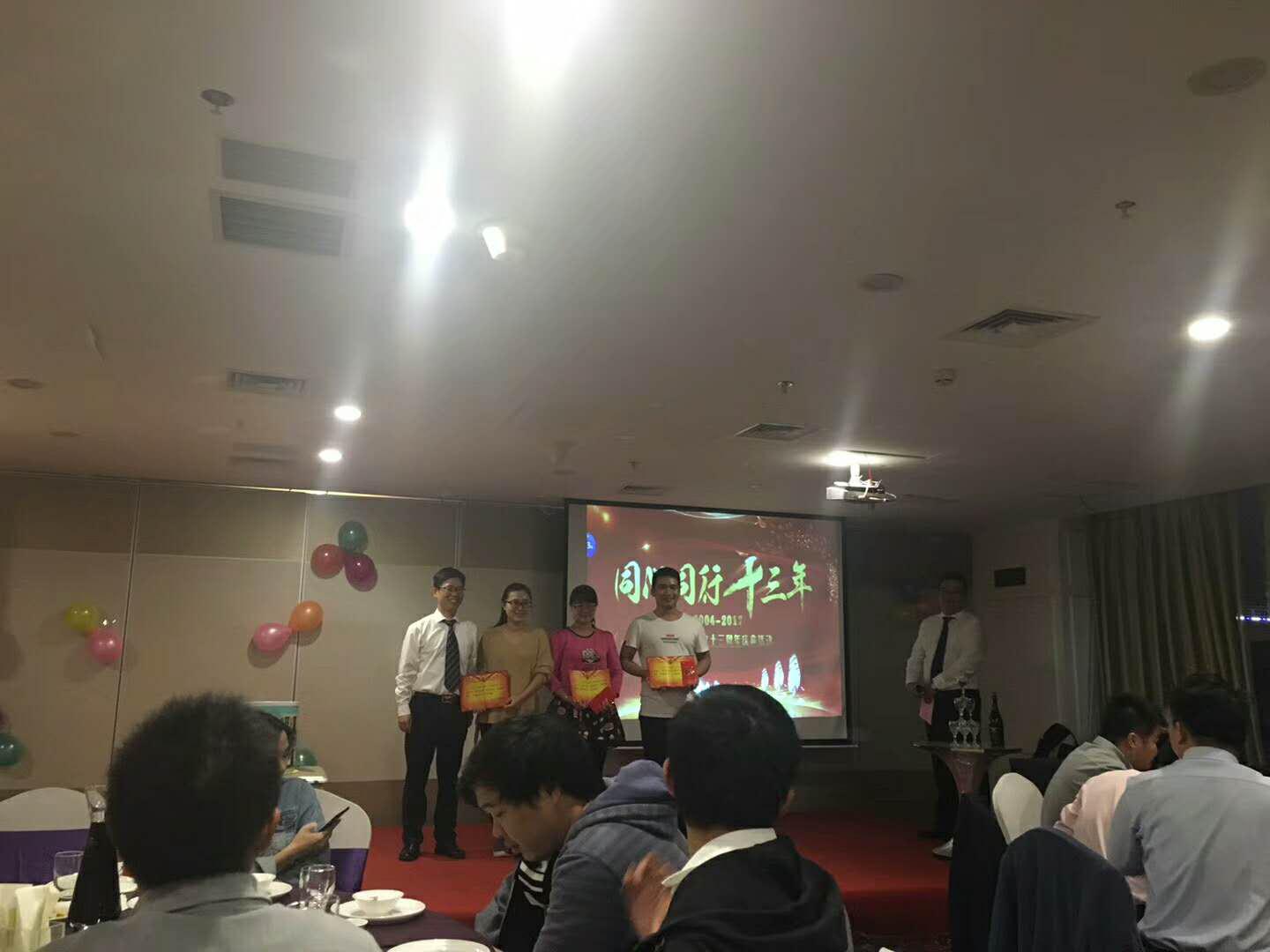 首先董事長方翔鳴先生發(fā)表了熱情洋溢的致辭,總結(jié)了過去一年的工作情況,并向今年離職的員工致以祝福,向今年加入的員工表示歡迎,展望新的一年,將繼續(xù)踐行“促進(jìn)社會(huì)進(jìn)步、超越顧客期望、幫助員工成長、成就供方發(fā)展”的經(jīng)營理念,號(hào)召大家同心同行,再創(chuàng)佳績。大家一起觀看《2004年-2017年集團(tuán)發(fā)展歷程短片》,并表彰了2017年度優(yōu)秀員工鄭芳芳、黃少郎、李萍等三位員工。