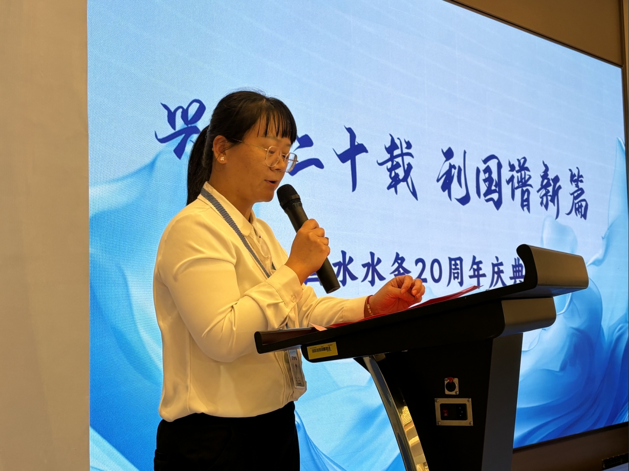 方翔鳴總經(jīng)理在致辭中,首先代表全體員工向長期以來關心和支持公司發(fā)展的客戶、合作伙伴以及家人朋友們致以衷心地感謝和誠摯地問候。接著,大家通過觀看《興水二十載 利國譜新篇》的宣傳短片和聆聽《數(shù)說國水20年》的主題分享,一起回顧了國水水務20年的發(fā)展歷程。國水水務20年,是國水水務人堅守初心、踐行使命的20年,是自我成長、回饋社會的20年,是夯實基礎、面向未來的20年。慶?;顒由希醢賵D、李萍、林佳楠三位員工代表分享了他們與國水的故事,部分客戶、老員工代表也通過短信、視頻等方式發(fā)來了溫馨地問候。