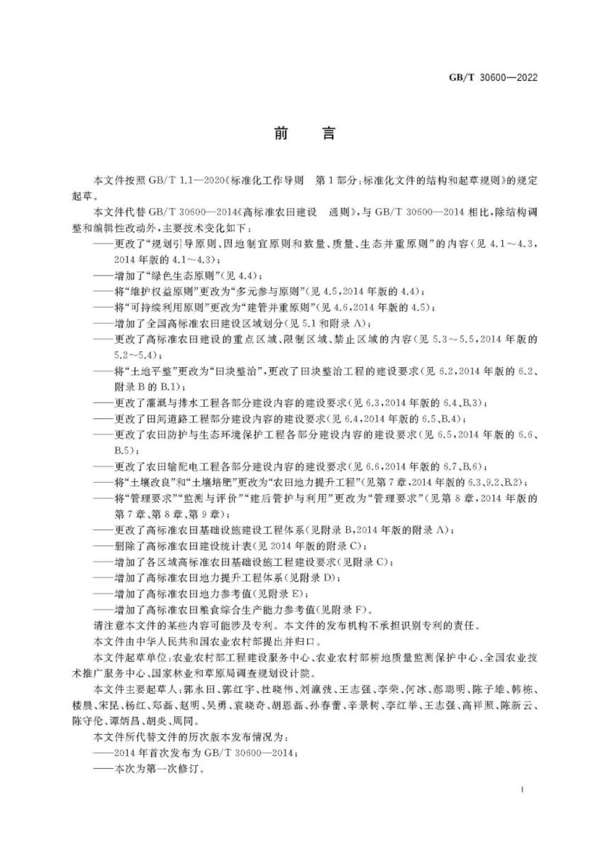 日前,《高標(biāo)準(zhǔn)農(nóng)田建設(shè) 通則》(GB/T30600-2022)(以下簡稱《通則》)經(jīng)國家市場監(jiān)督管理總局(國家標(biāo)準(zhǔn)化管理委員會)批準(zhǔn)發(fā)布,將于2022年10月1日起正式實施。這是2014年《高標(biāo)準(zhǔn)農(nóng)田建設(shè) 通則》(GB/T30600-2014)(以下簡稱原《通則》)發(fā)布后的首次修訂,也是2018年黨和國家機構(gòu)改革,農(nóng)田建設(shè)管理職能整合歸并至農(nóng)業(yè)農(nóng)村部后,農(nóng)業(yè)農(nóng)村部牽頭修訂的第一個農(nóng)田建設(shè)領(lǐng)域重要國家標(biāo)準(zhǔn)。