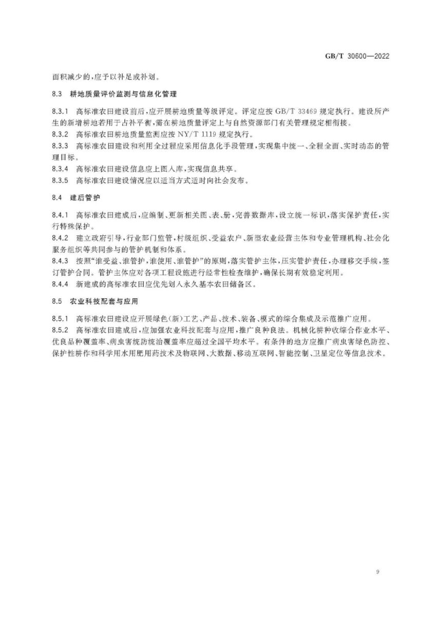 為提高《高標(biāo)準(zhǔn)農(nóng)田建設(shè) 通則》國家標(biāo)準(zhǔn)的適用性,我們適時組織開展了標(biāo)準(zhǔn)的實施效果評估。按照《全國高標(biāo)準(zhǔn)農(nóng)田建設(shè)規(guī)劃(2021—2030年)》要求,與農(nóng)業(yè)農(nóng)村部密切配合,快速完成《高標(biāo)準(zhǔn)農(nóng)田建設(shè) 通則》國家標(biāo)準(zhǔn)的修訂。